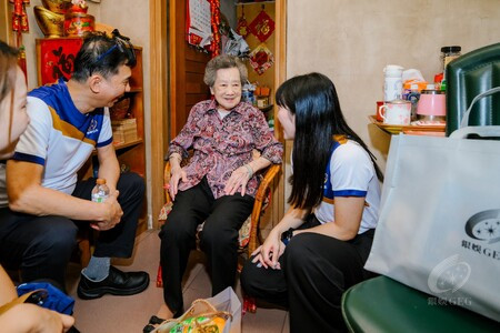 GEG team members visited the homes of several single-living elderly and other Peng On Tong users this afternoon. During the visits, the team members engaged warmly with the service users, helped tidy up their households, and delivered care packages filled with fresh fruits and daily essentials, spreading love and warmth in a harmonious atmosphere. Additionally, accompanying professional technicians conducted on-site safety inspections and repairs of household electrical appliances and power systems for the families to ensure home safety.