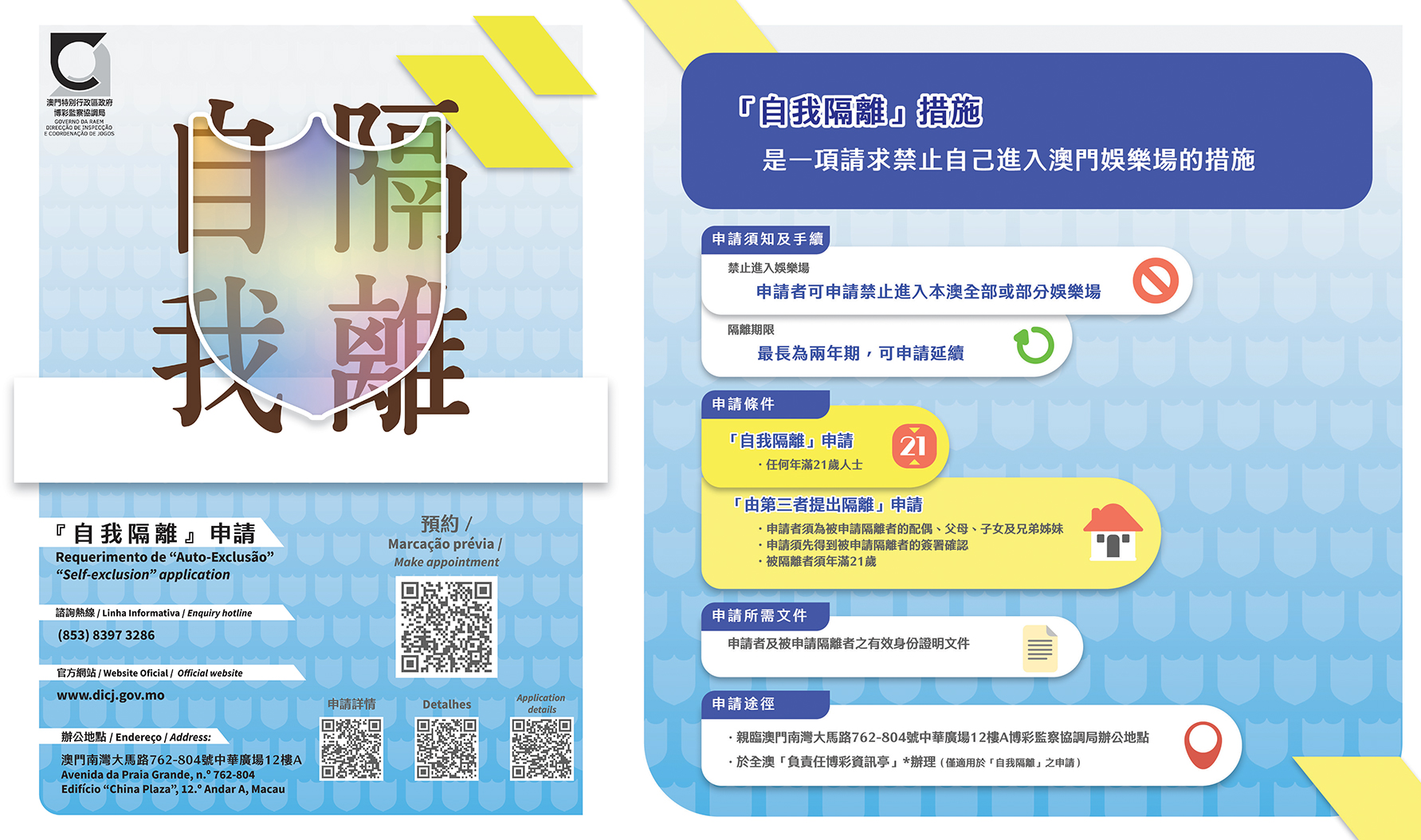 如欲了解更多官方负责任博彩及隔离申请资讯,请点击浏览澳门博彩监察协调局专页。