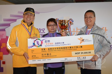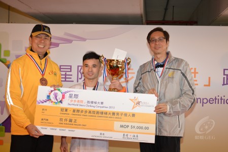 星際酒店及娛樂場營運董事蘇澤霖先生表示:「跑樓梯比賽是星際酒店一個很好的傳統, 至今已舉行了第四屆,成為星際酒店的年度盛事,活動體現了友誼第一、比賽第二的精神, 此外每年賽事均見到新、舊面孔參加,大家一起見證著星際酒店的成長和發展。」男、女 子組冠軍分別由餐飲部的沈敦水和角子機娛樂場部的廖麗盈奪得,各獲得澳門幣九千元獎 金。隊際賽則由三名管家部員工組成的隊伍勇奪,由部門主管帶領的明星賽則由娛樂桌奪 得;至於最佳服裝獎則由兩男兩女的管家部同事,憑著身穿圍裙和頭巾參賽而獲獎。
